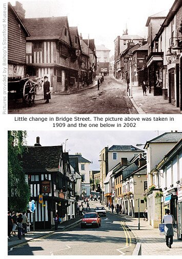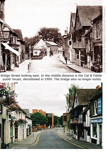 Present day Bridge Street was originally a continuation of High Street – the short section of road beyond the crossroads at the top of the hill – and wasn’t named as such until a proper river crossing was established, probably in the 1760s when the Stort Navigation was built and this part of the river was banked and contained.