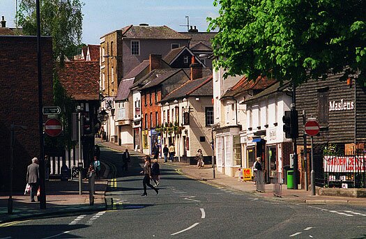 There are visual clues in the lie of the land as to the provenance of the name ‘Bishop’s Stortford’. The bottom of Bridge Street sits between two hills where, for centuries, the river flowing through this valley from its source in Langley Hills, Essex created a wide flood plain. The resulting marshland was virtually impassable but for a narrow causeway between the two hills, and it was this, combined with the fact that the river at this point was naturally wide and quite shallow, that made it an ideal crossing place or ‘ford’.