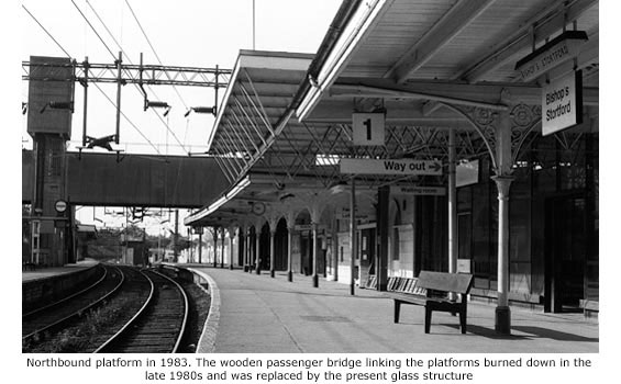 In 1958 the remodelling of Bishop’s Stortford station began in conjunction with the North East London Suburban Electrification scheme. The North signal box was demolished in 1960 and control of all trains was then operated from the South signal box. That same year a new enclosed wooden footbridge, complete with parcel lift, was built to link the extended platforms, but this burned down in the 1980s and was replaced by the present structure.