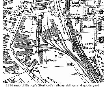 By 1869 the Bishop’s Stortford, Dunmow and Braintree branch line had been completed, its original route veering off eastwards from the main line about half a mile north of the station. The last section of the branch line was removed in 1974, but in the mid 1980s a new spur was created a few miles further north to service newly built Stansted Airport with high-speed trains from Liverpool Street Station.