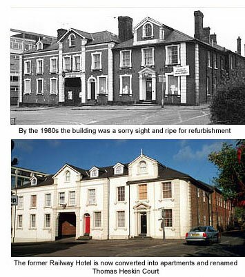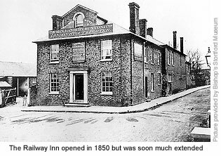Later renamed The Railway Hotel the building is now substantially larger than the original inn, its stable courtyard having had extensive additions built around it in the late 19th century to increase the number of rooms available for travellers.