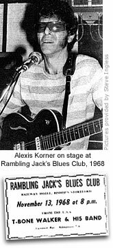 A professional pianist, he had briefly run a small club in Hoddesdon, Hertfordshire, but joined with the Railway Hotel’s landlord, Gary Lane, to open Rambling Jack’s Blues Club on 10 January 1968. Every Wednesday evening, for almost two years, both new and established bands would play here, the most noteworthy names being Dr K’s Blues Band (playing on the opening night), Jack Dupree, Chicken Shack, Jethro Tull, Free, and Alexis Korner (1929–1984) – arguably once the most well known patron of Blues music in this country.