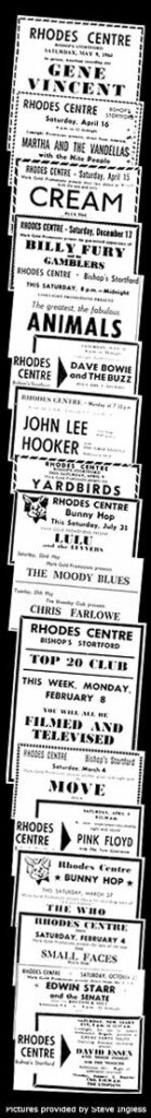 Some of the more famous and familiar names to appear at the Rhodes Centre between 1964 and 1967 were: