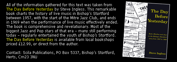 Live music in the town had earlier been made popular with the creation of the Mitre Jazz Club (See Guide 14), and though it had closed the previous year at Long’s Ballroom because of falling attendances and a change in musical taste, promoters lost no time in forming the Rhodes Jazz Club. It survived for just one year but brought live jazz music back to the town.