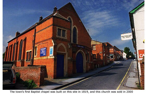 In 1819 the first Baptist chapel was built on the site of the present church in Newtown Road, on a piece of ground known as Sandpit Field. Rules set up for church government suggest these first baptists were of the Particular Baptist tradition, but in 1832 they joined the *Baptist Union. The resulting increase in the congregation forced the building of a gallery the following year, and further enlargement of the chapel in 1841 and 1869. Thirty years later it was pulled down and replaced by the present church. This was built by local builder Joseph Glasscock at a cost of £2,000, and went on to serve the Baptist community for 101 years.