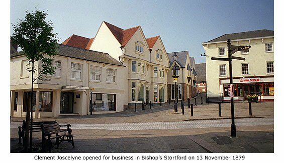 The name Joscelyne has been associated with Bishop’s Stortford ever since 1879 when Clement Joscelyne cycled here from Braintree, Essex, to find premises in which to start a furniture shop. For sale he found No 16 Market Square, a 16th century premises occupied by George Sapsford, butcher and slaughterer. The property was described as ‘two dwelling houses with front shops, large enclosed yard, slaughterhouse, cattle pound, stable and a cottage with blacksmith’s shop’.