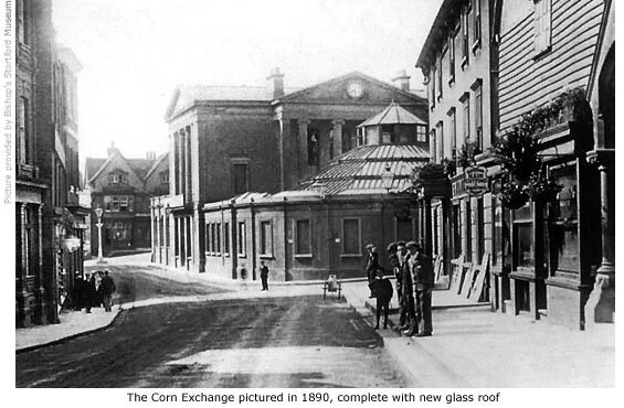 On 21 January 1828 the property was sold by William Stacey (in full agreement with the other members of the family) to George Perry, innkeeper of Bishop’s Stortford, and in the same year purchased for £3,150 for the purpose of erecting a Corn Exchange on the site.