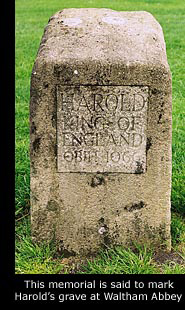 Perhaps the biggest mystery surrounding Harold is the location of his last resting-place. Earliest records say that William afforded him no ceremony after the Battle of Hastings and buried the body on the seashore. However, informed chroniclers say that Edith the Fair identified Harold by marks on his body known only to her; facial recognition being practically impossible as he had been felled by an arrow in the eye. Norman cavalry then mutilated the body – decapitating him after first chopping off his right leg and part of the left.