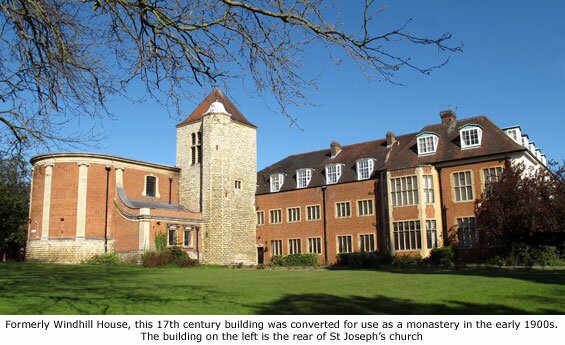 The present three-storey building on this site was erected in the 17th century as a private residence called Windhill House, but has since undergone a great deal of alteration leaving very little of the original building intact. In the 18th century the timber and plaster walls were encased with bricks, and modernisation of the interior has left only the Jacobean staircase and plaster-work decoration on the dining room ceiling (similar to that found in Cooper’s store at Bridge Street). The existing Georgian front was added in 1806 and one hundred years later the rear of the house was greatly extended to form the monastery.