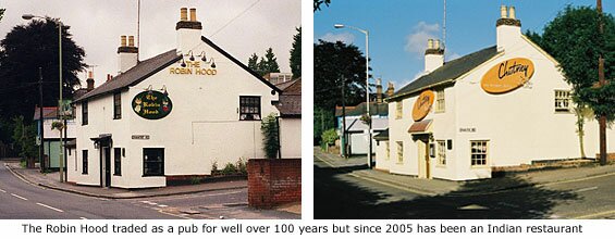 Pictured here is the former Robin Hood public house, a landmark at the corner of Hadham Road and Chantry Road from the 19th century until the end of 2004. It then became an Indian restaurant called Chutney Joe but in 2013 was renamed Zara.