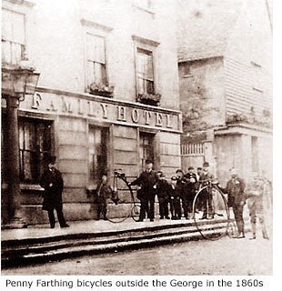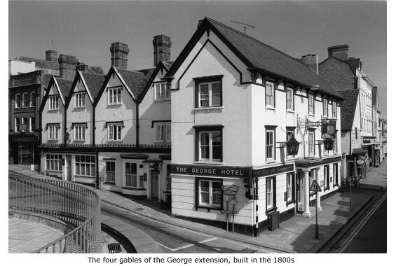 Shortly after 1800 the barn was demolished and replaced by five cottages. These were later incorporated into the main building, heightened to three storeys and roofed with four gables front and back. This is the part of the George that now stretches into the High Street.