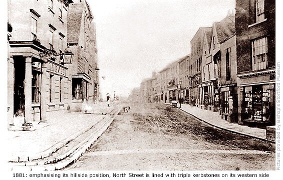 This was the backbone of the original Saxon settlement, but not recorded as ‘Northe Streate’ until the 13th century. On the west side there were once 4 private houses and 6 inns, and in 1642 there were about 50 households here. This street has been party to more of the town’s history than any other local thoroughfare: kings, queens, the famous and infamous have all passed through it, as have armies, processions, parades and countless marching bands.