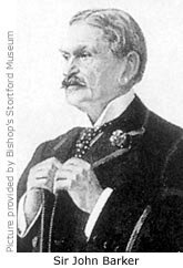 Sir John Barker was born at Loose, Kent, on 6 April 1840. His father, Joseph Barker, was a carpenter and brewer, and his mother’s name was Ann Sells. Privately educated, he began a three year apprenticeship to a draper in Maidstone in 1853, then gained further experience in drapery shops in Folkstone and Dover. In 1858 he moved to London where he joined Messrs Spencer, Turner, and Boldero, a firm of furnishers and drapers in Marylebone, and from there moved to William Whiteley’s new emporium in Westbourne Grove. There he proved a gifted salesman and was soon promoted to department manager, doubling the store’s sales as well as his own salary. He’d hoped for a partnership in the firm, but Whiteley was reluctant to relinquish sole control and instead compensated him with £1,000 per year.