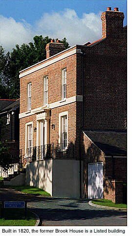 Dominating this new housing development, constructed in 1997/98, is the former Brook House. Originally built in 1820, and now a listed building, it once had two embattled single-storey wings on either side. The house itself now appears as being only two storeys high, but the undated early illustration (above) clearly shows it as three storeys. How this has been achieved is a mystery (to me). In its time the property has been used as a private house, a school, a public house and an hotel, and has been known by several names including the Terrace House, Layham House, and Brook End.