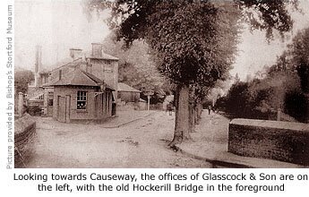 The bridge that spans the waterway at this point, built in the early 1960s when Causeway was widened, could best be described as ‘functional’ and easily missed. It replaced a narrower more conventional bridge, but what had been of adequate strength for horse-drawn transport was not suitable for heavy traffic. First mention of a bridge here was in 1350, referred to as Hokkerell Bregge, but it’s likely that some form of construction had been in place long before that time to enable passage between the town and Hockerill.